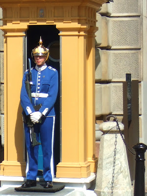 Und die Wachen am königlichen Schloss. Auch sehr schön bunt.